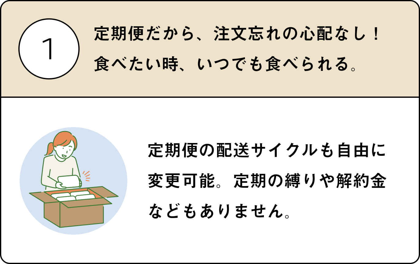 ※スキップ、停止、解約の手順はFAQよりご確認いただき、次回お届け予定日の6日前までにご対応ください。